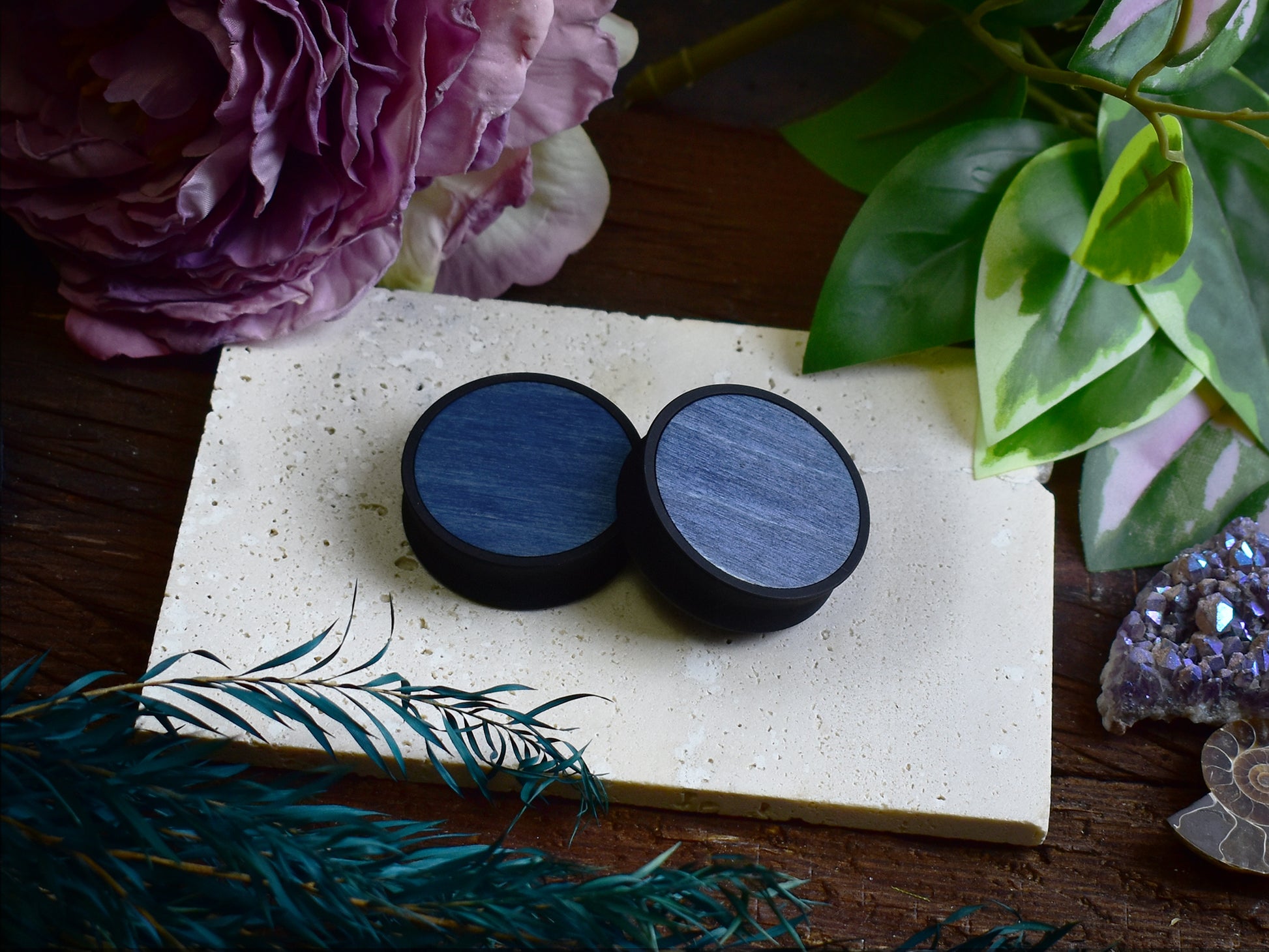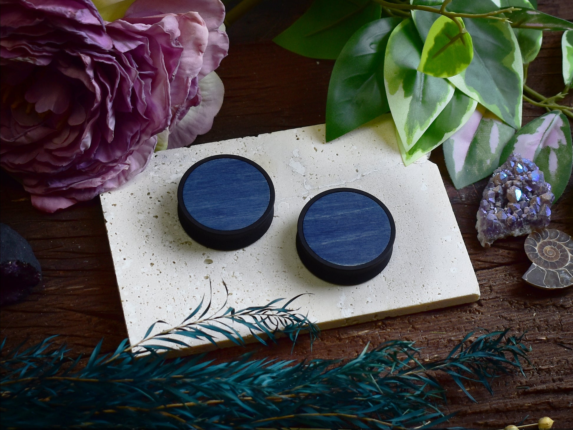 Ohrtunnel 10-100mm mit Holzfüllung | Blau